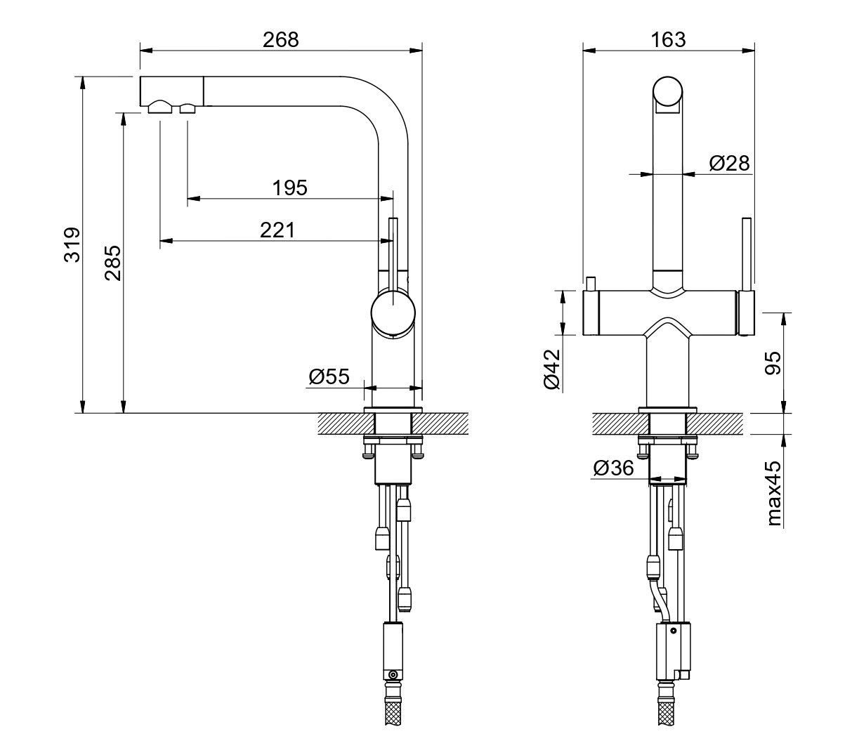• оснащен высоким изливом, удобен для мытья крупных предметов
