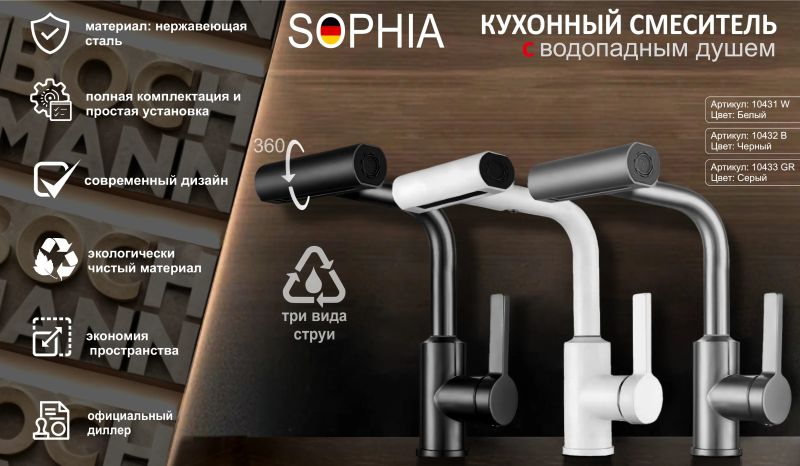 Смеситель для кухни Boch Mann Sophia B BM10432 с водопадным душем чёрный купить