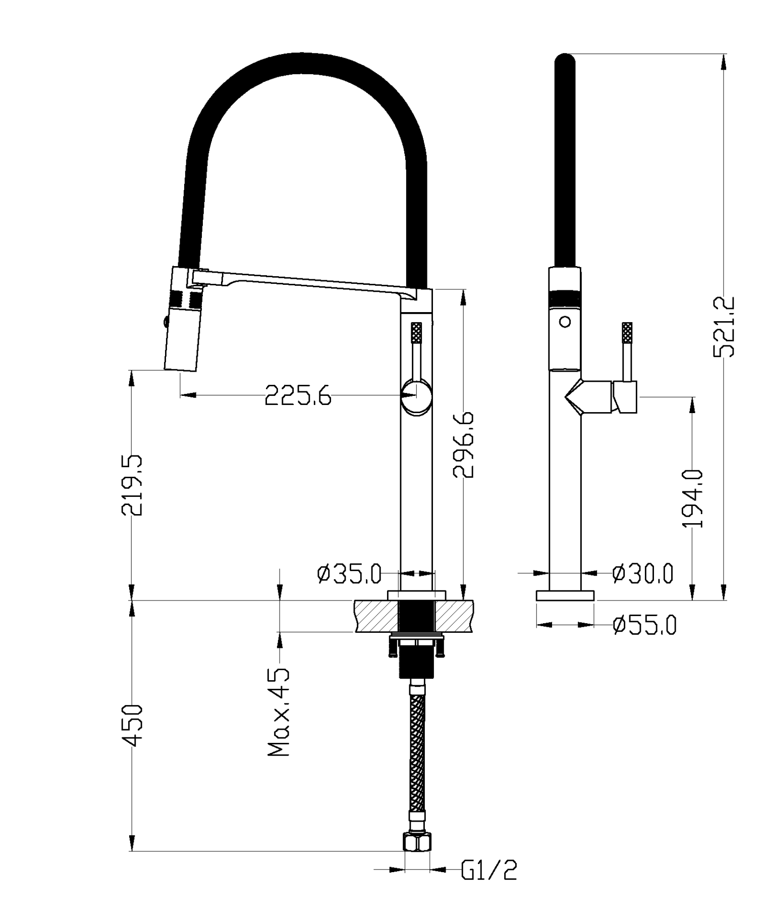 • Выдвижной излив: