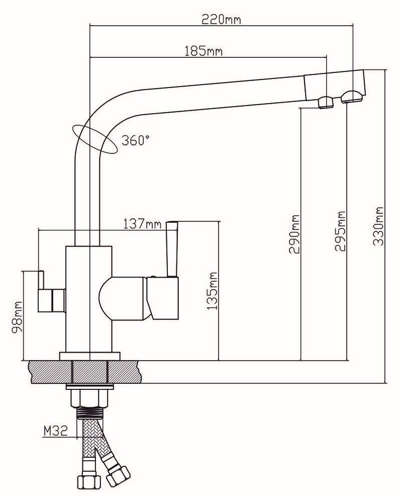 • Высота смесителя: