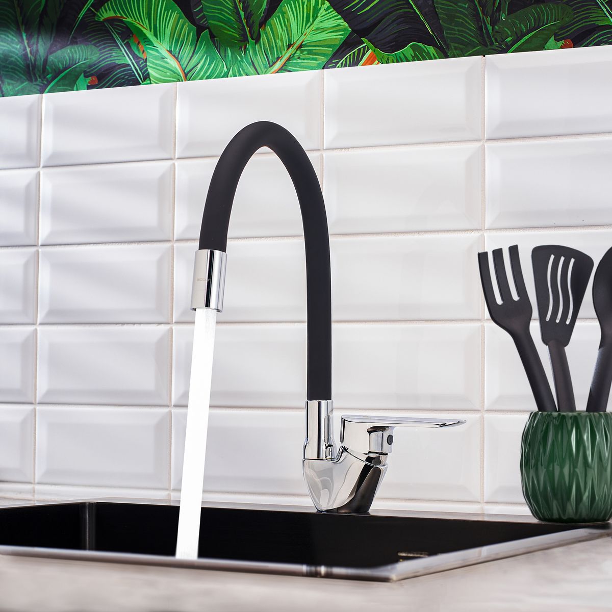 Смеситель для кухни BOOU B8274-10F-E307A хром/чёрный