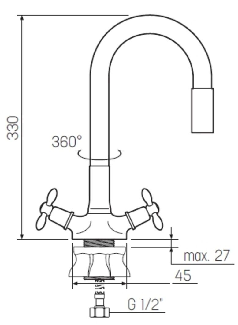 • Высота смесителя: