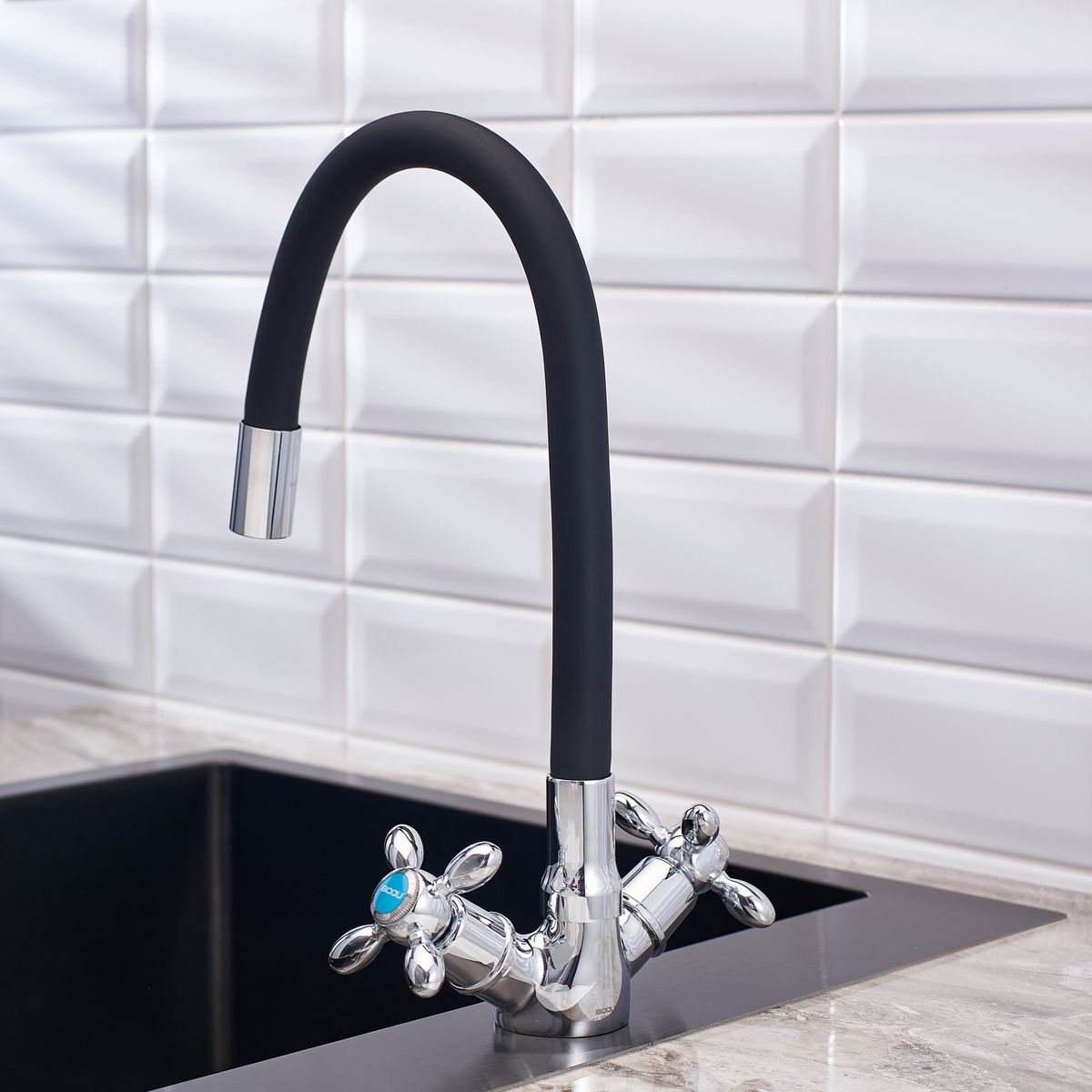 Смеситель для кухни BOOU BA5318-1F-E352A-B702 хром/чёрный