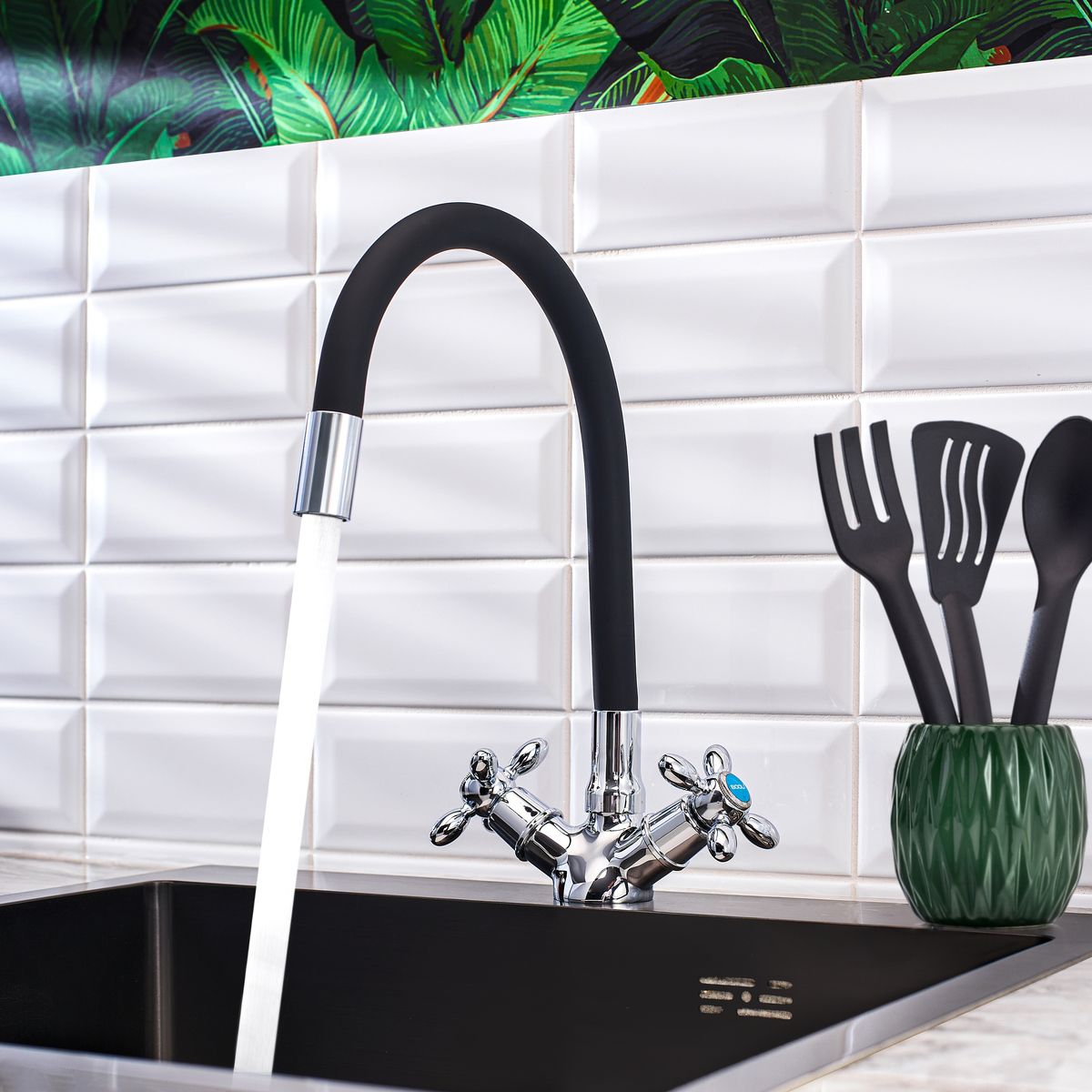 Смеситель для кухни BOOU BA5318-1F-E352A-B702 хром/чёрный купить