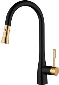 Смеситель для кухни DQ Rhein Schiller с выдвижной лейкой чёрный/золото DA1462517A