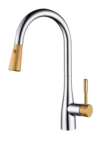 Смеситель для кухни DQ Rhein Schiller с выдвижной лейкой хром/золото DA1462504D
