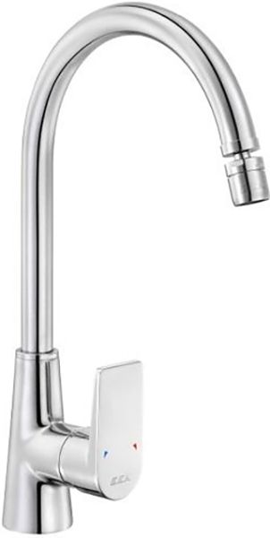 Смеситель E.C.A предназначен для подачи горячей и холодной воды в кухонных помещениях. Модель оснащена керамическим картриджем, обеспечивающим плавный ход рычага смесителя, контроль и точность при выборе напора и температуры воды. Дополнительные характеристики: