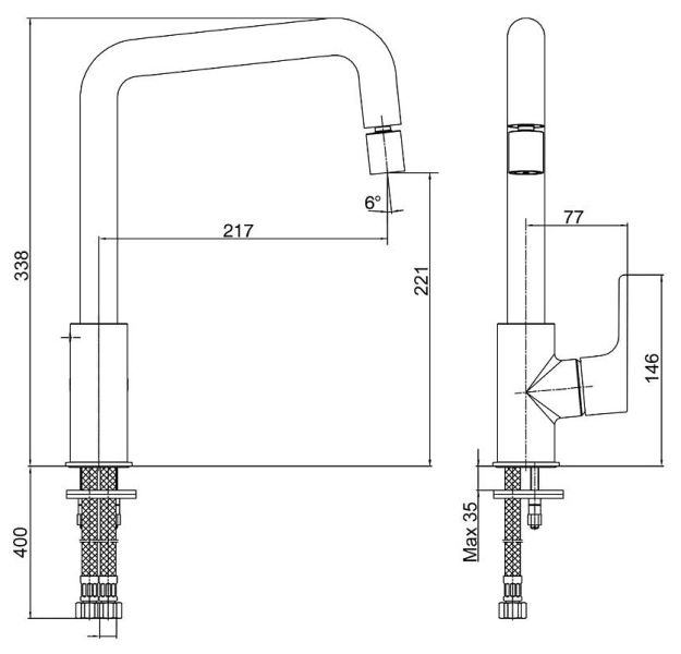 • Высота смесителя: