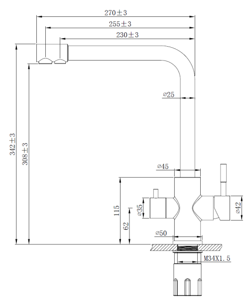 • Высота смесителя: