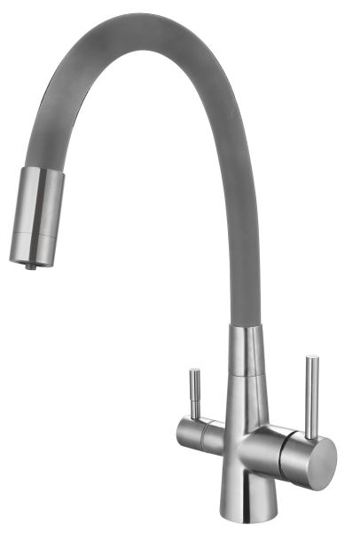 Смеситель "Coral" для кухни с подключением к фильтру, арт. CL 03 G: Стиль и функциональность в одном флаконе.Хотите наслаждаться чистой водой прямо из-под крана? Смеситель "Coral" – это идеальное решение для вашей кухни! Его стильный серый корпус из нержавеющей стали прекрасно впишется в любой интерьер. Гибкий излив длиной 63,2 см позволит легко наполнить любую посуду. Отдельная система подачи фильтрованной воды с удобным переключателем сделает вашу жизнь проще.Преимущества:Стильный дизайн: серый корпус из нержавеющей стали.