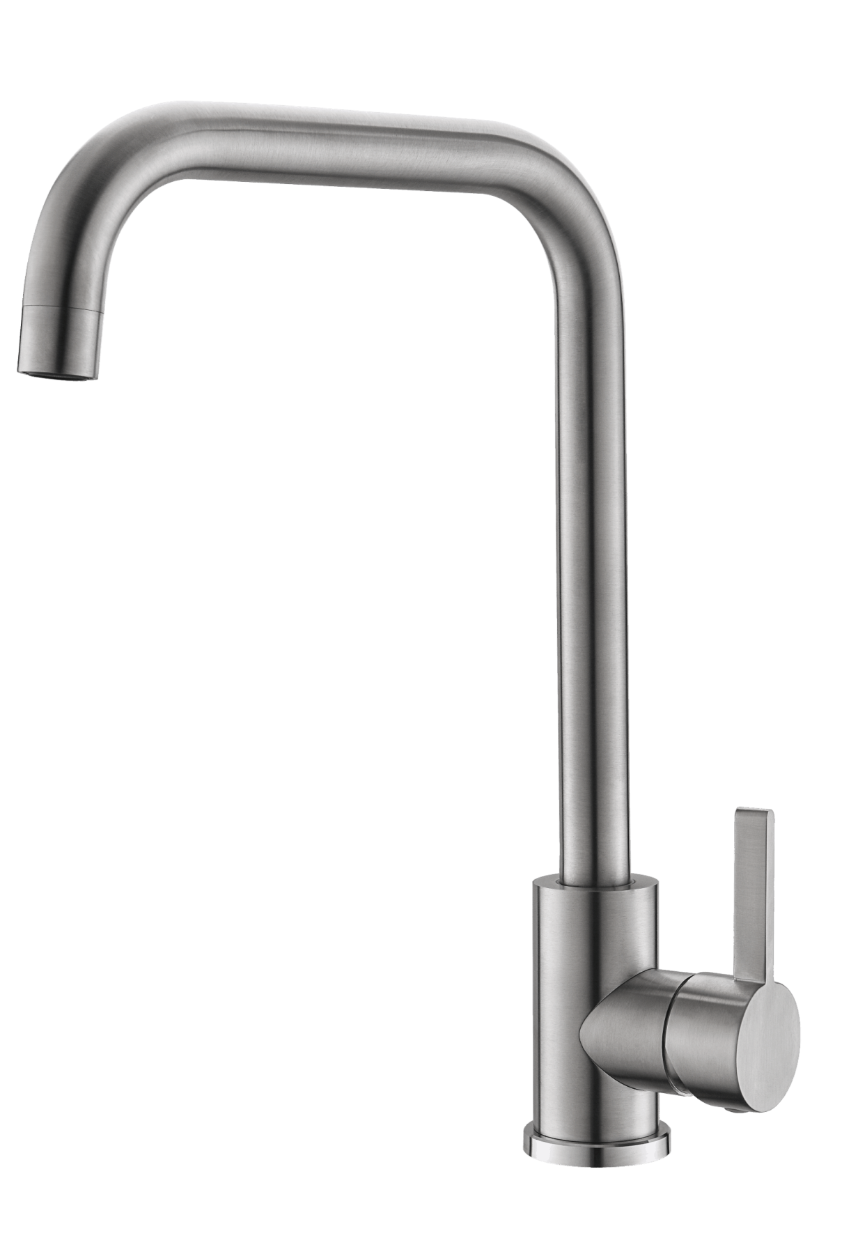 Смеситель для кухни, высокий излив, нержавеющая сталь, арт. K57: Совершенство в каждой детали.Ищете надежный и стильный смеситель для кухни? Модель K57 – это именно то, что вам нужно! Его элегантный дизайн с высоким П-образным изливом из нержавеющей стали станет украшением любой кухни. Керамический картридж обеспечивает плавную регулировку подачи воды. Этот смеситель не только функционален, но и долговечен.Преимущества:Стильный дизайн: нержавеющая сталь, высокий излив.