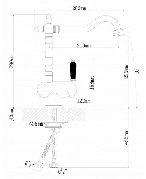 • Высота смесителя: