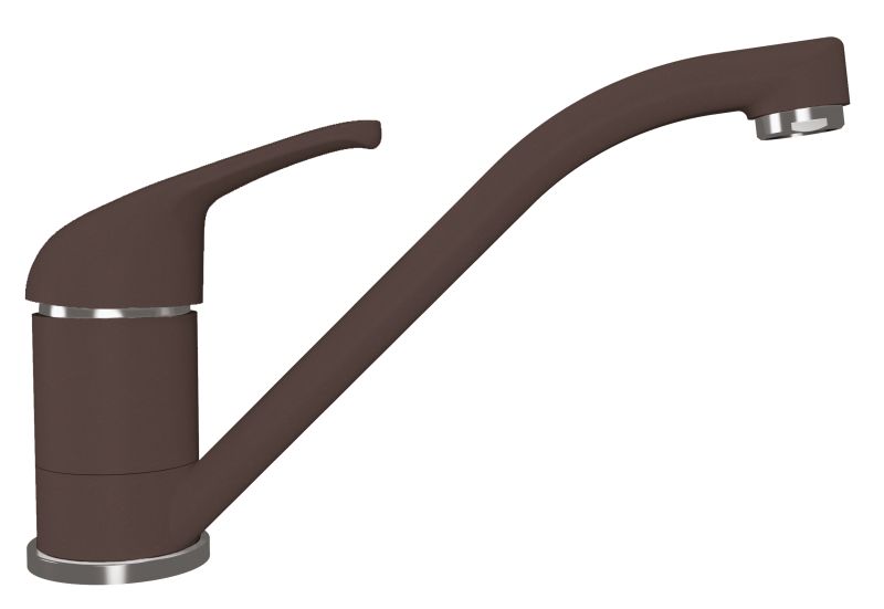 Смеситель однорычажныи? с низким изливомМатериал - материал корпуса латунь , материал излива нерж. стальПоворотныи? изливКерамическии? картридж 40ммГибкая подводка 50 см