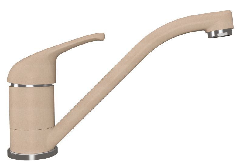 Смеситель однорычажныи? с низким изливомМатериал - материал корпуса латунь , материал излива нерж. стальПоворотныи? изливКерамическии? картридж 40ммГибкая подводка 50 см