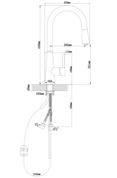 • Высота смесителя: