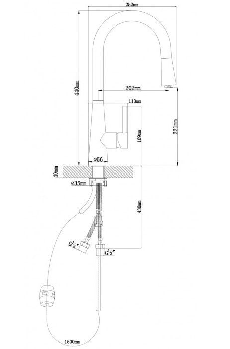 Высота смесителя:44