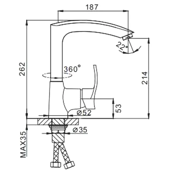 • Высота смесителя:
