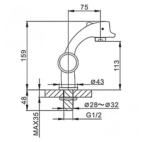 • Высота смесителя: