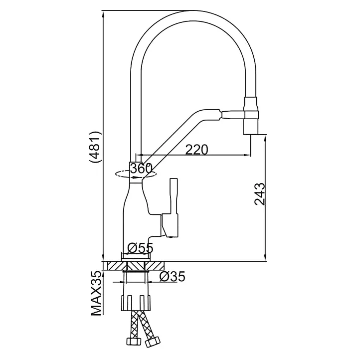 • Высота смесителя: