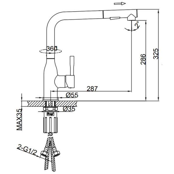 Смеситель для кухни Frap F6096-9 Оружейная сталь