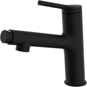 Cмеситель для кухонной мойки или умывальника Gappo G1052-76 - функциональная модель с выдвижной лейкой и поворотным носиком. Однорычажное управление обеспечивает плавную настройку температуры и регулировку напора воды. Цвет - черный матовый.