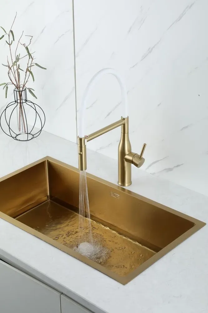 Смеситель для кухни Gappo G4098-23 с гибким изливом золотой сатин