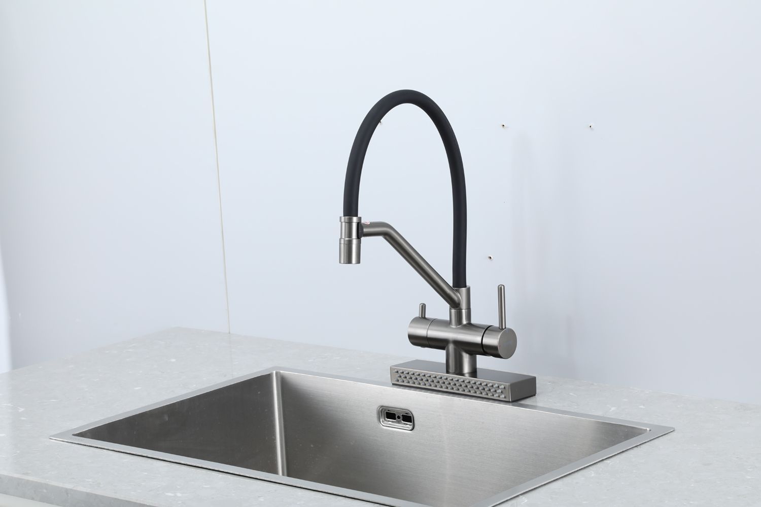 Смеситель для кухни Gappo G4098-9 с водопадом и гибким изливом оружейная сталь