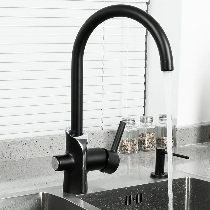 Смеситель для кухни Gappo G4303-6 со встроенным фильтром под питьевую воду чёрный/хром купить
