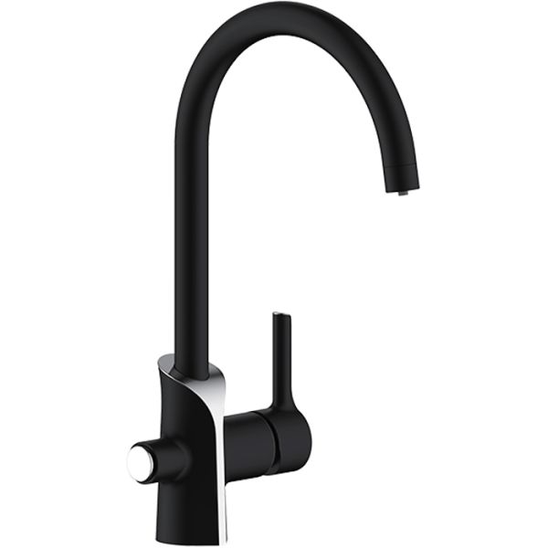 Cмеситель для кухонной мойки Gappo G4303-6 с подключением фильтра питьевой воды - стильная и надежная однорычажная модель из латуни с высоким поворотным изливом. Смеситель легок в установке, не требуется сверления дополнительных отверстий под фильтр: обычная и фильтрованная вода подаются через один излив. Однорычажное управление обеспечивает плавную настройку температуры и регулировку напора воды. Имеет испанский керамический картридж Sedal 35 мм. Цвет - черный с хромированной вставкой.