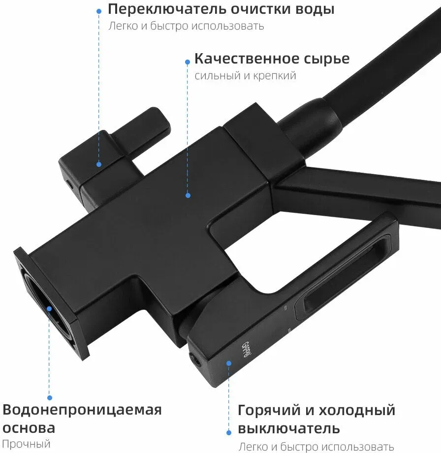 Смеситель для кухни Gappo G4317-6 со встроенным фильтром под питьевую воду чёрный