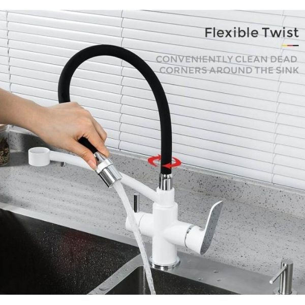 • Излив: поворотный, силиконовый, гибкий, цвет - черный / белый