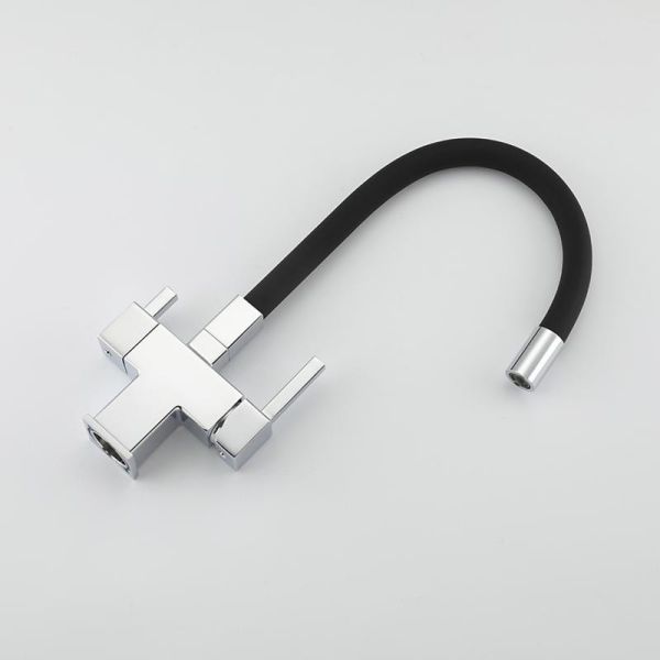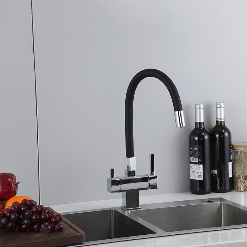 Смеситель для кухни Gappo G4395-30 с подключением фильтра питьевой воды и гибким изливом хром/чёрный