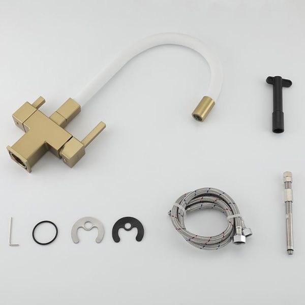 Смеситель для кухни Gappo G4395-33 с подключением фильтра питьевой воды и гибким изливом золото/белый купить