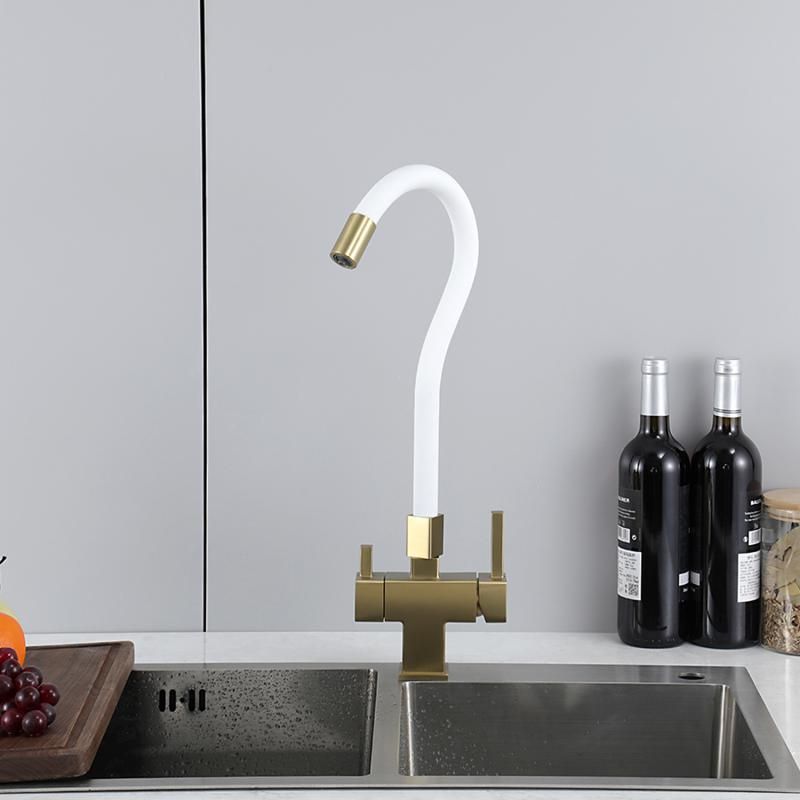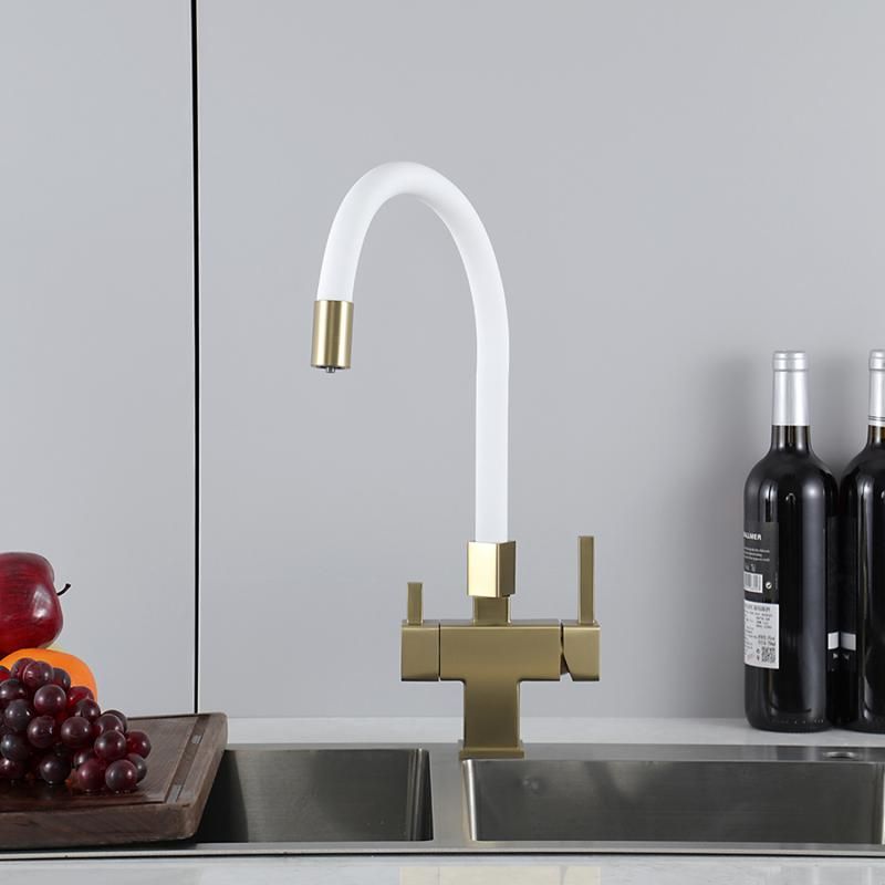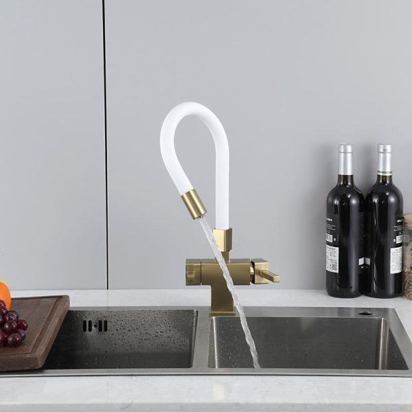 Смеситель для кухни Gappo G4395-33 с подключением фильтра питьевой воды и гибким изливом золото/белый