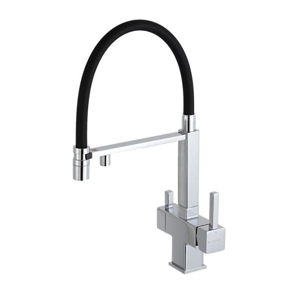 Смеситель для кухни Gappo G4395-50 с подключением фильтра питьевой воды и гибким изливом хром/чёрный