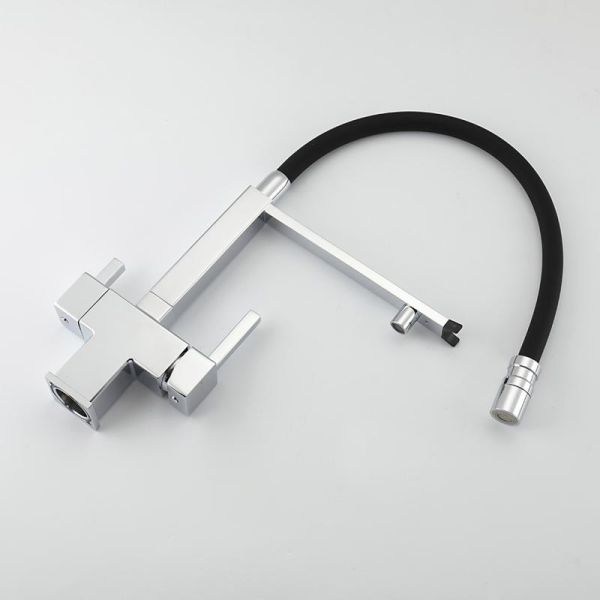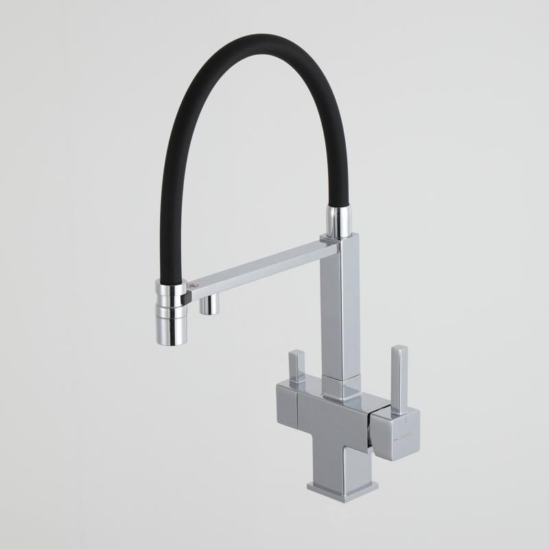 Смеситель для кухни Gappo G4395-50 с подключением фильтра питьевой воды и гибким изливом хром/чёрный купить