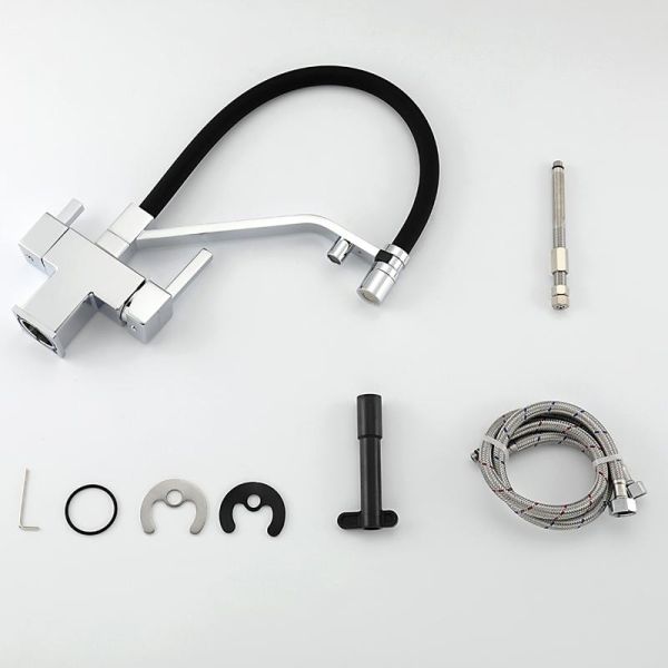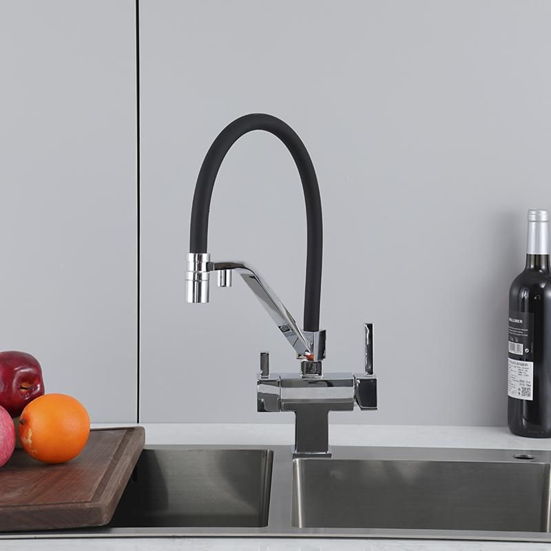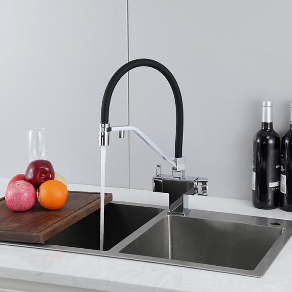 Смеситель для кухни Gappo G4395-60 с подключением фильтра питьевой воды и гибким изливом хром/чёрный