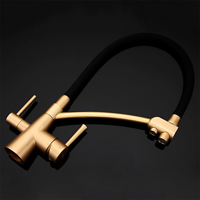 Смеситель для кухонной мойки Gappo G4398-1 с подключением фильтра питьевой воды - стильная и практичная однорычажная модель с гибким изливом, отличается наивысшей функциональностью и удобством пользования в быту. Смеситель легок в установке, не требуется сверления дополнительных отверстий под фильтр. Модель имеет компактный рычажок для подачи воды из-под фильтра, а второй рычаг отвечает за регулировку потока. Однорычажное управление обеспечивает плавную настройку температуры и регулировку напора воды. Цвет - бронза.