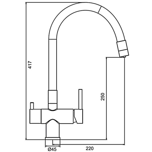 - высота смесителя: 417 мм