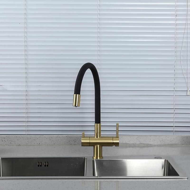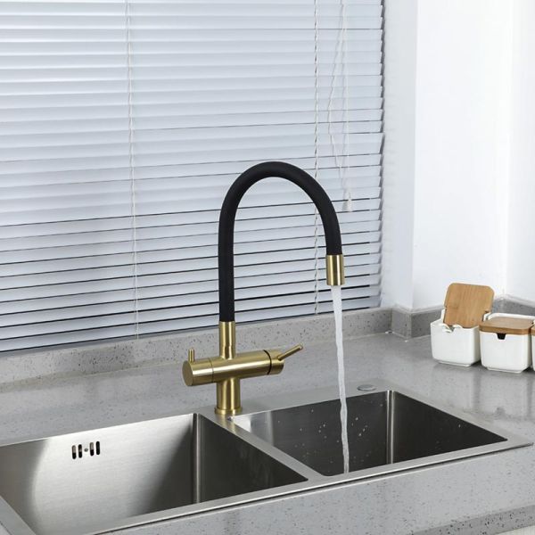 Смеситель для кухни Gappo G4398-33 под фильтр с гибким изливом чёрный/золото