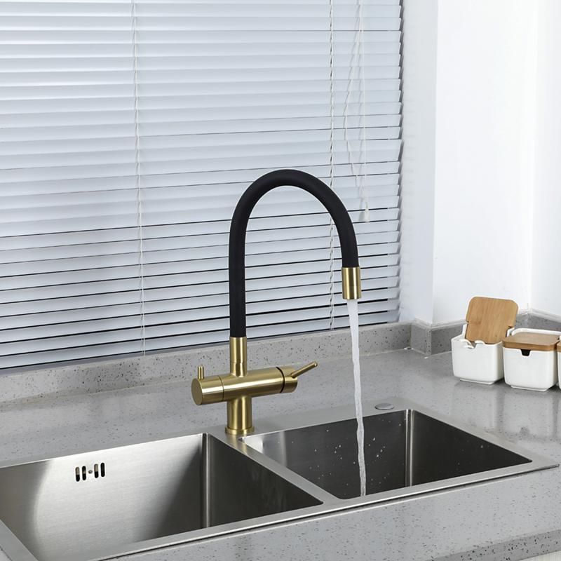 Смеситель для кухни Gappo G4398-33 под фильтр с гибким изливом чёрный/золото купить