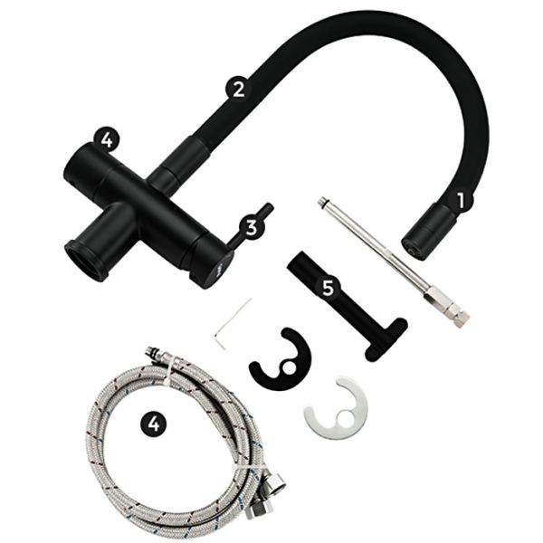Смеситель для кухонной мойки Gappo G4398-36 с подключением фильтра питьевой воды - однорычажный смеситель из латуни с черным матовым покрытием и гибким изливом из силикона. Смеситель подключается к системе очистки воды.