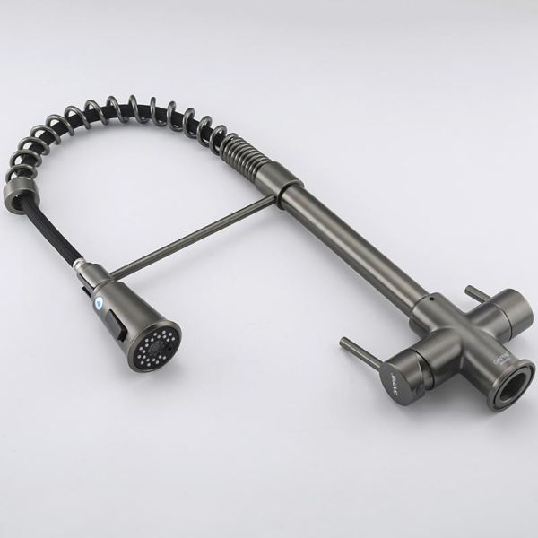 Смеситель для кухни Gappo G4398-69 с гибким выдвижным изливом и подключением фильтра питьевой воды оружейная сталь