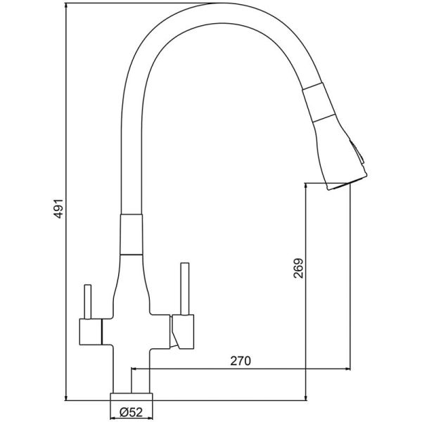 - высота смесителя: 538 мм