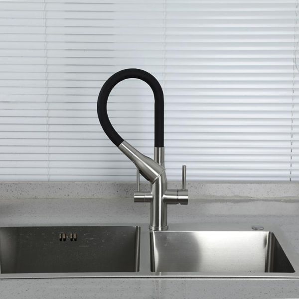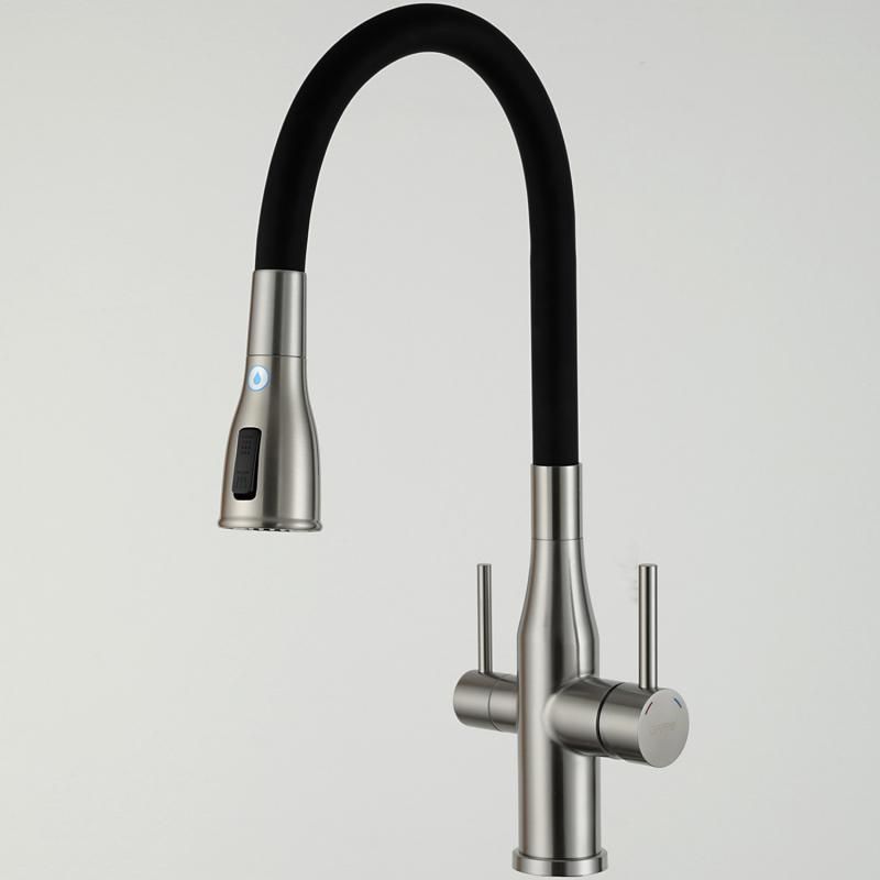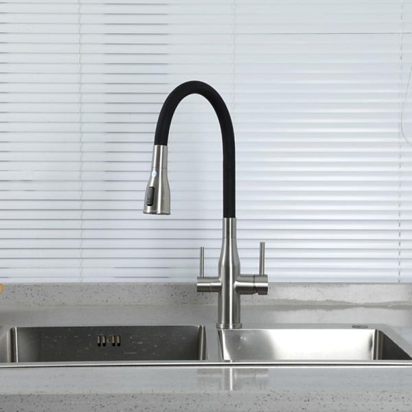 Смеситель для кухни Gappo G4399-65 с гибким изливом и подключением фильтра питьевой воды сатин