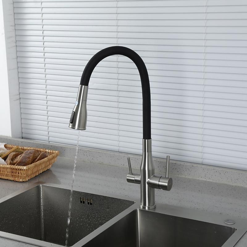 Смеситель для кухни Gappo G4399-65 с гибким изливом и подключением фильтра питьевой воды сатин купить