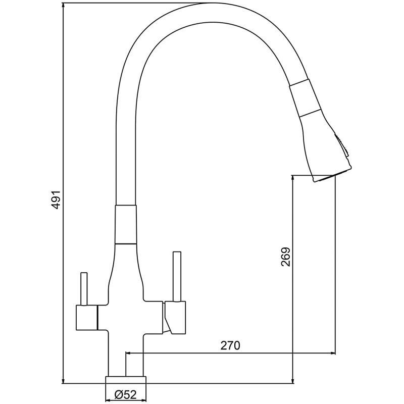 • высота смесителя: 538 мм