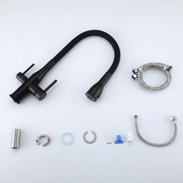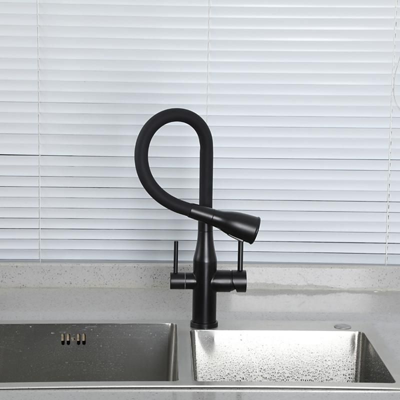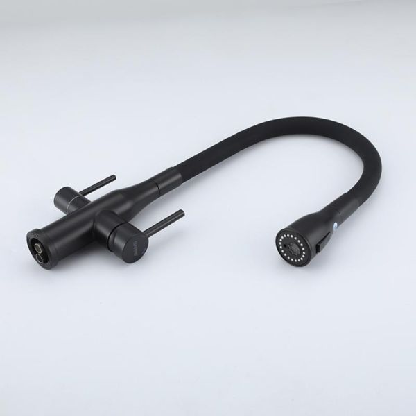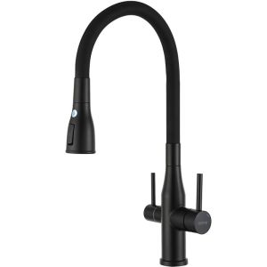 Смеситель для кухни Gappo G4399-66 с гибким изливом и подключением фильтра питьевой воды чёрный