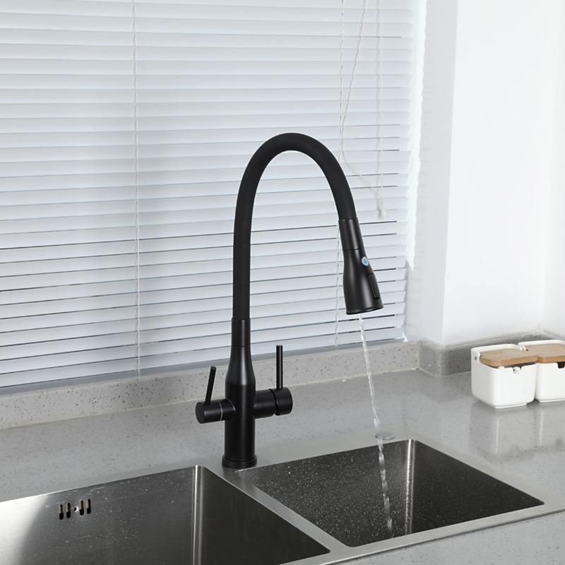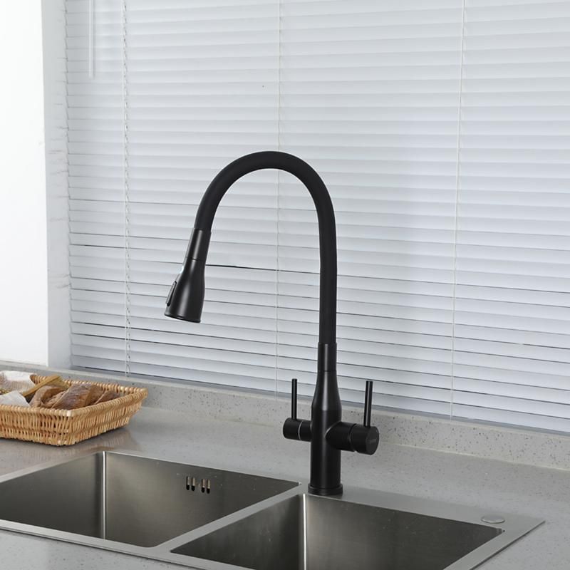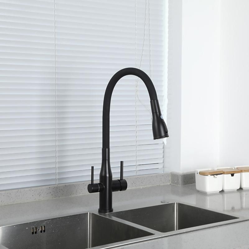 Смеситель для кухни Gappo G4399-66 с гибким изливом и подключением фильтра питьевой воды чёрный купить
