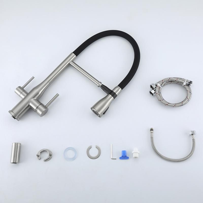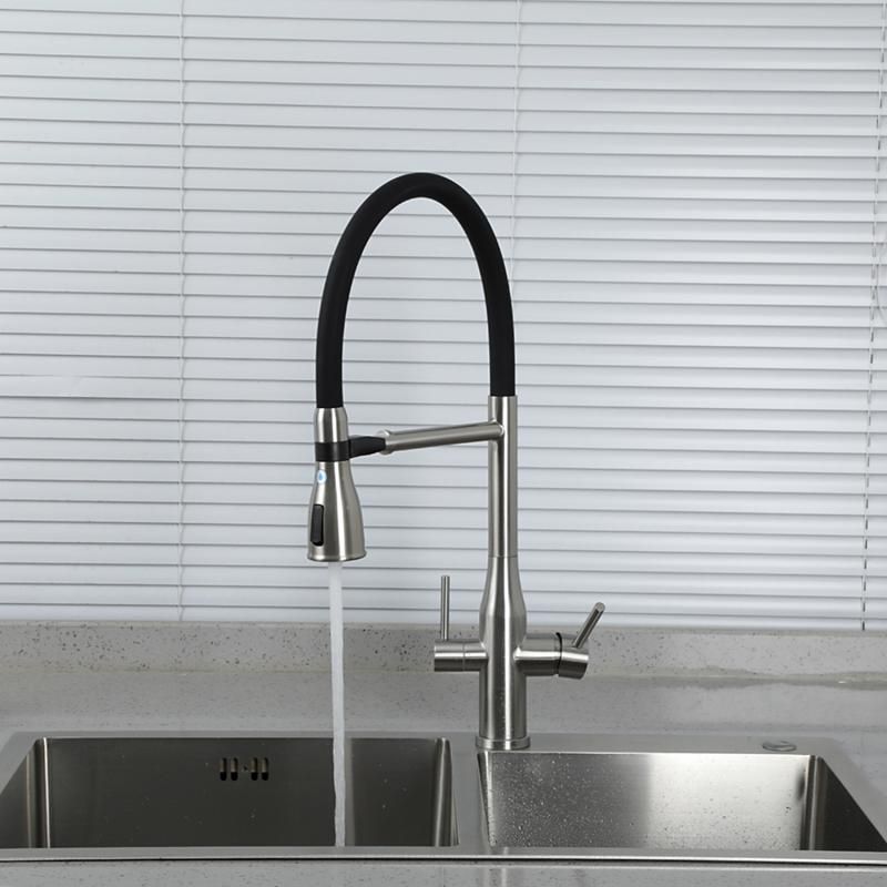 Смеситель для кухни Gappo G4399-75 с гибким изливом и подключением фильтра питьевой воды сатин/чёрный